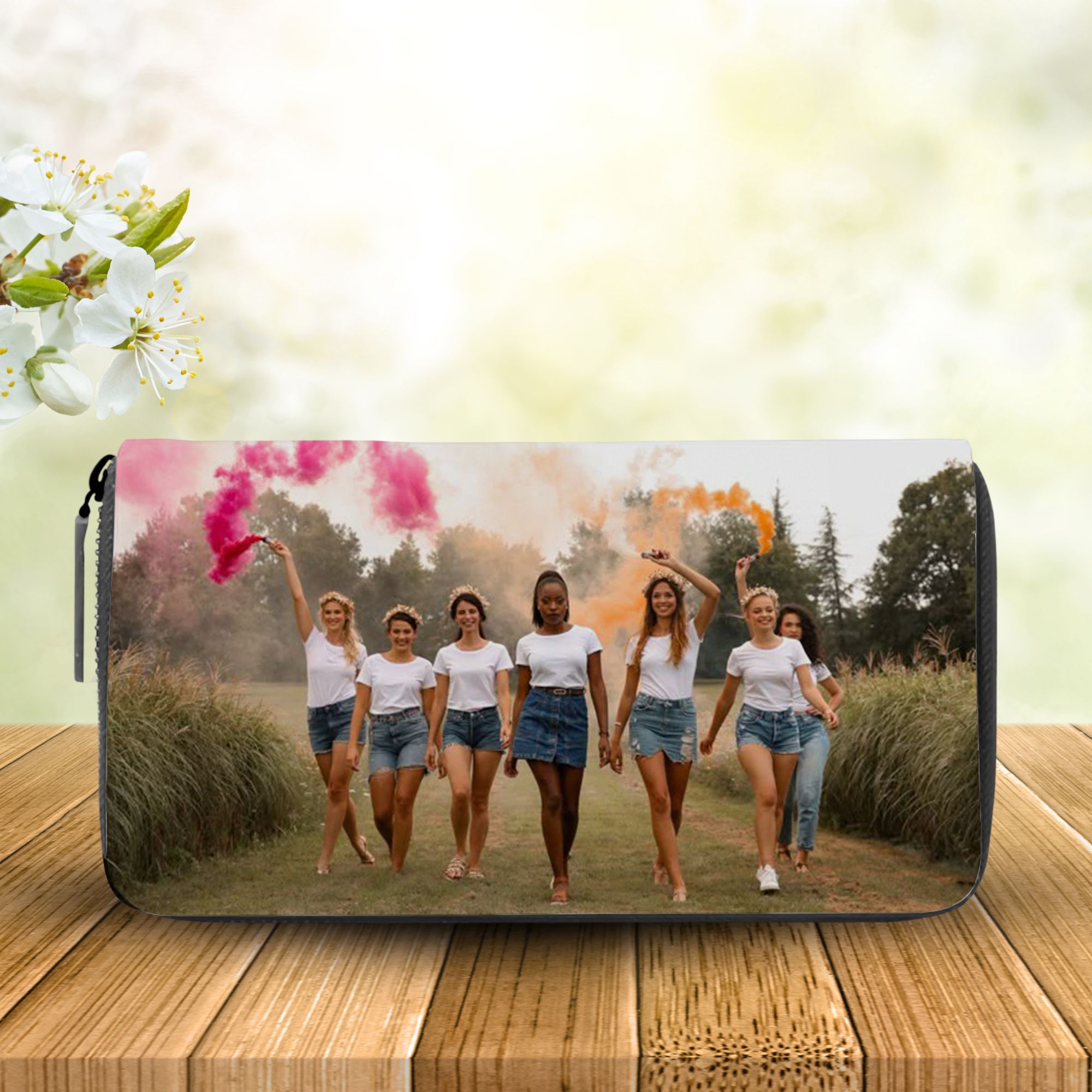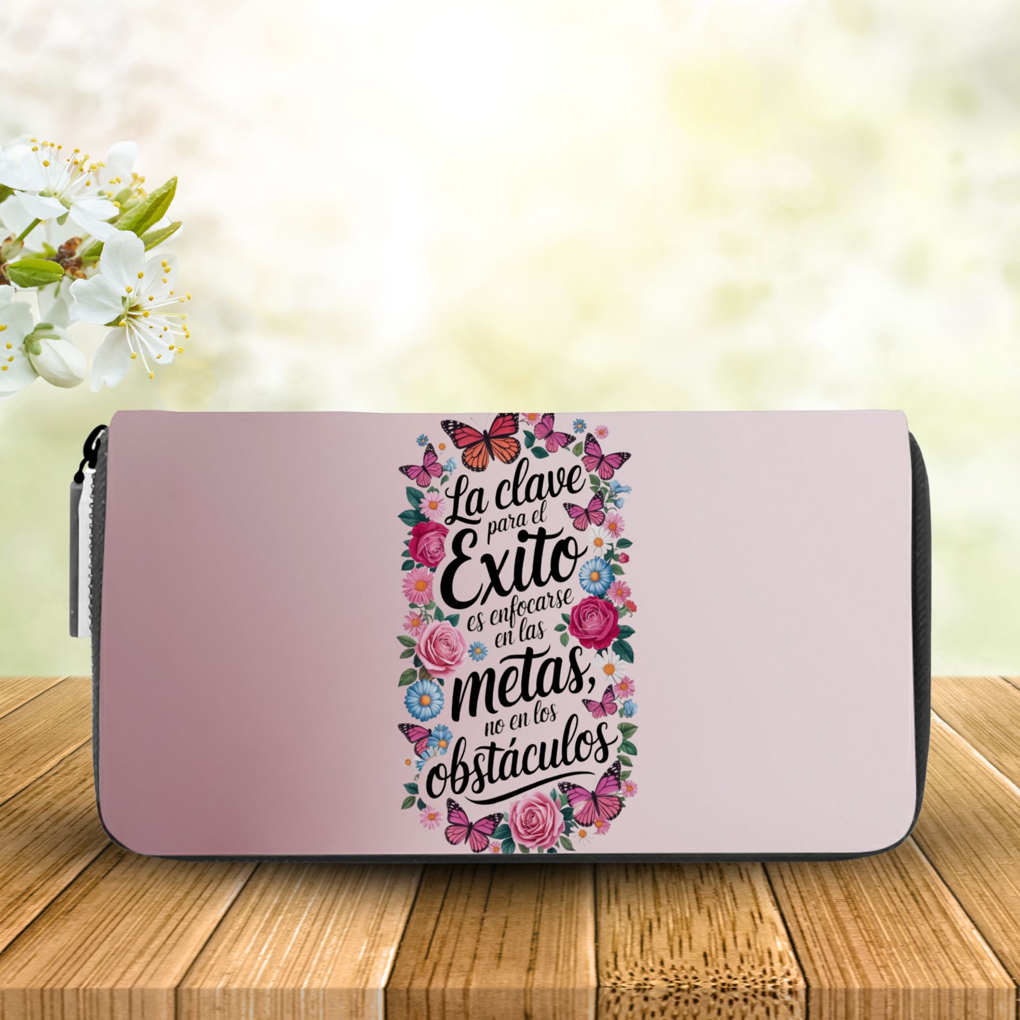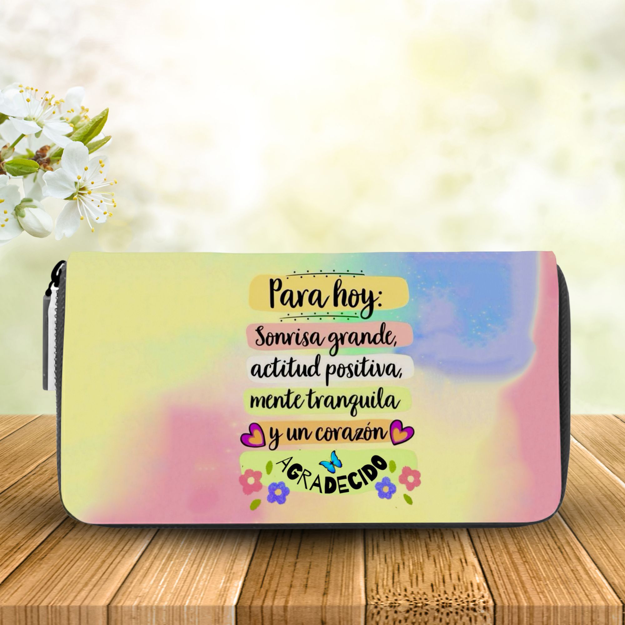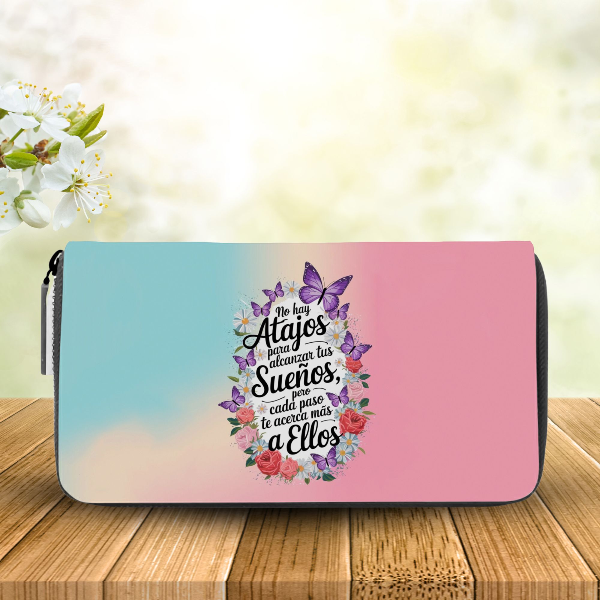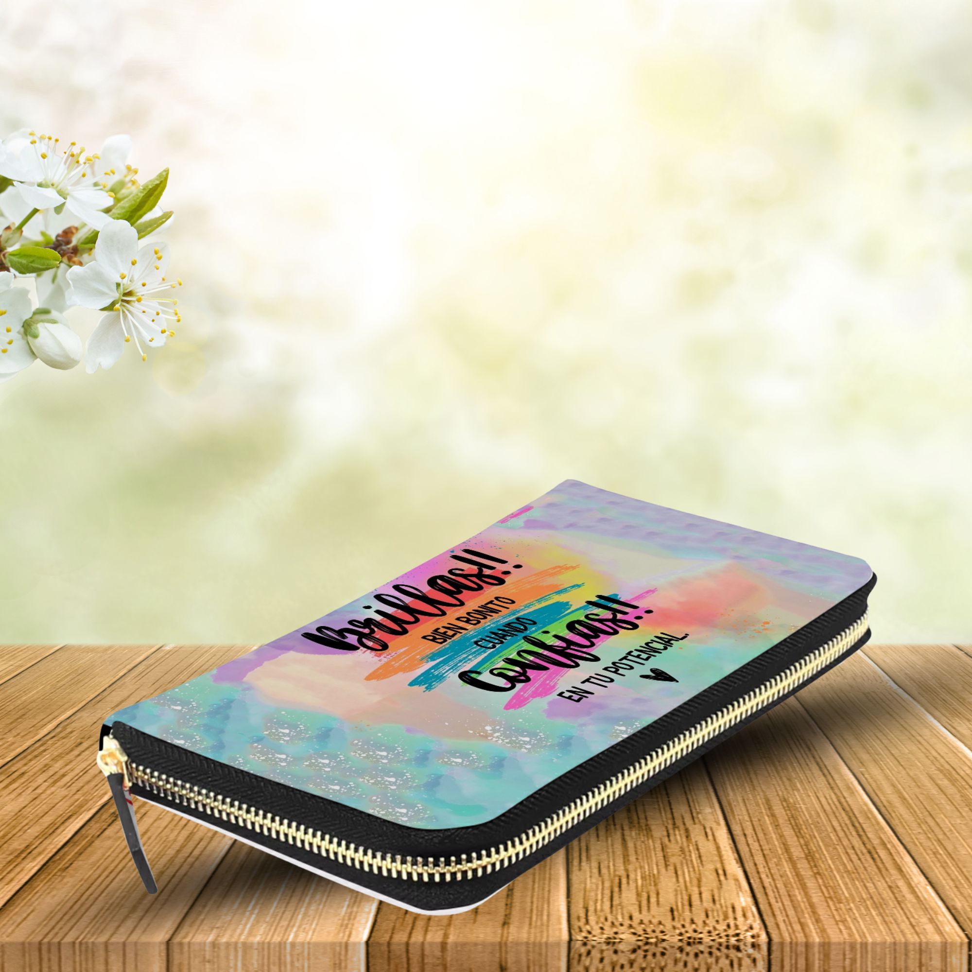 La billetera monedero personalizada de Creaciones Online es el complemento ideal para la mujer moderna que busca funcionalidad y estilo. Con unas dimensiones de 18,5 cm de ancho y 9 cm de alto, este modelo se adapta perfectamente a cualquier bolso, ofreciendo un espacio adecuado para tus tarjetas, billetes y monedas. Su diseño elegante y práctico la convierte en una opción versátil para el uso diario o para ocasiones especiales.