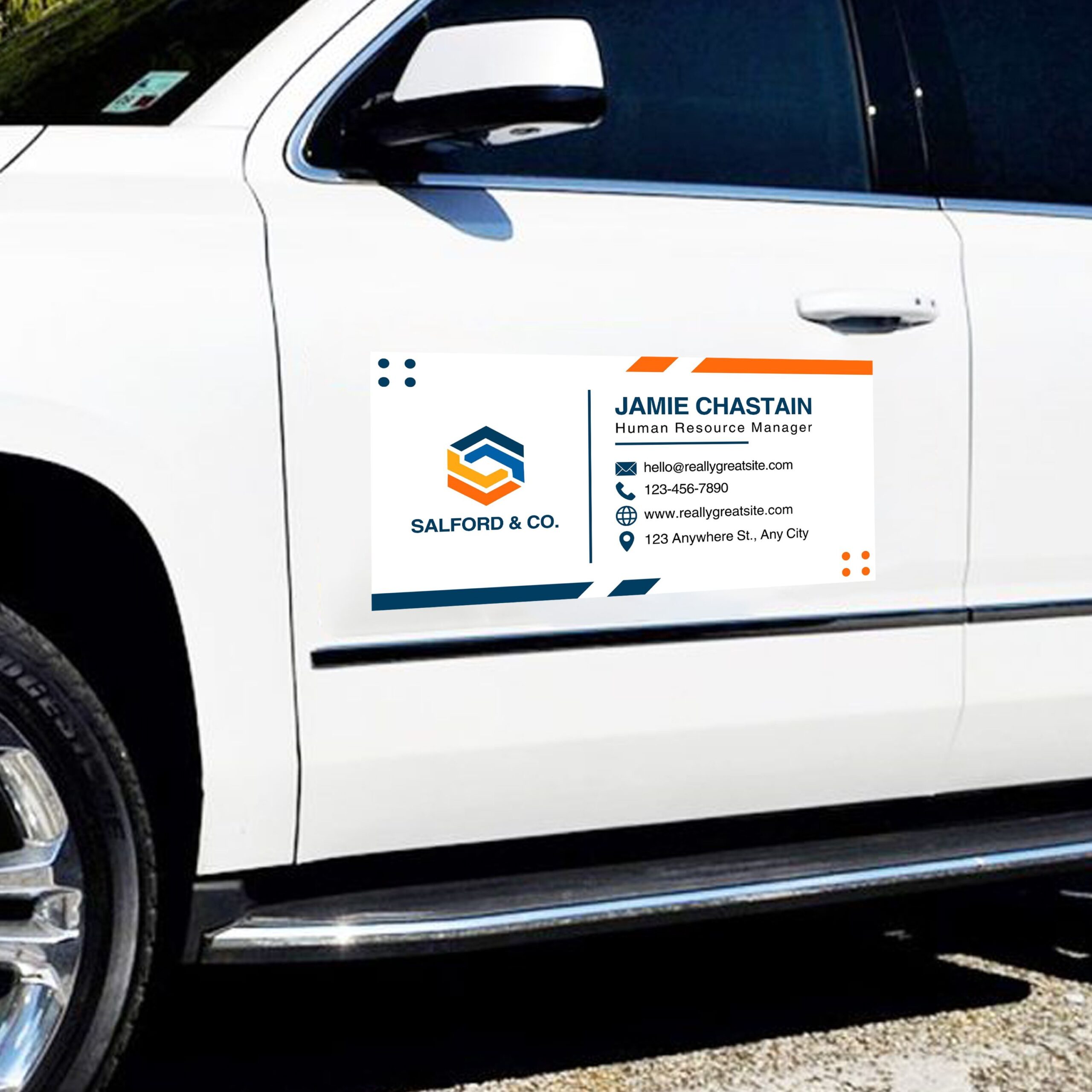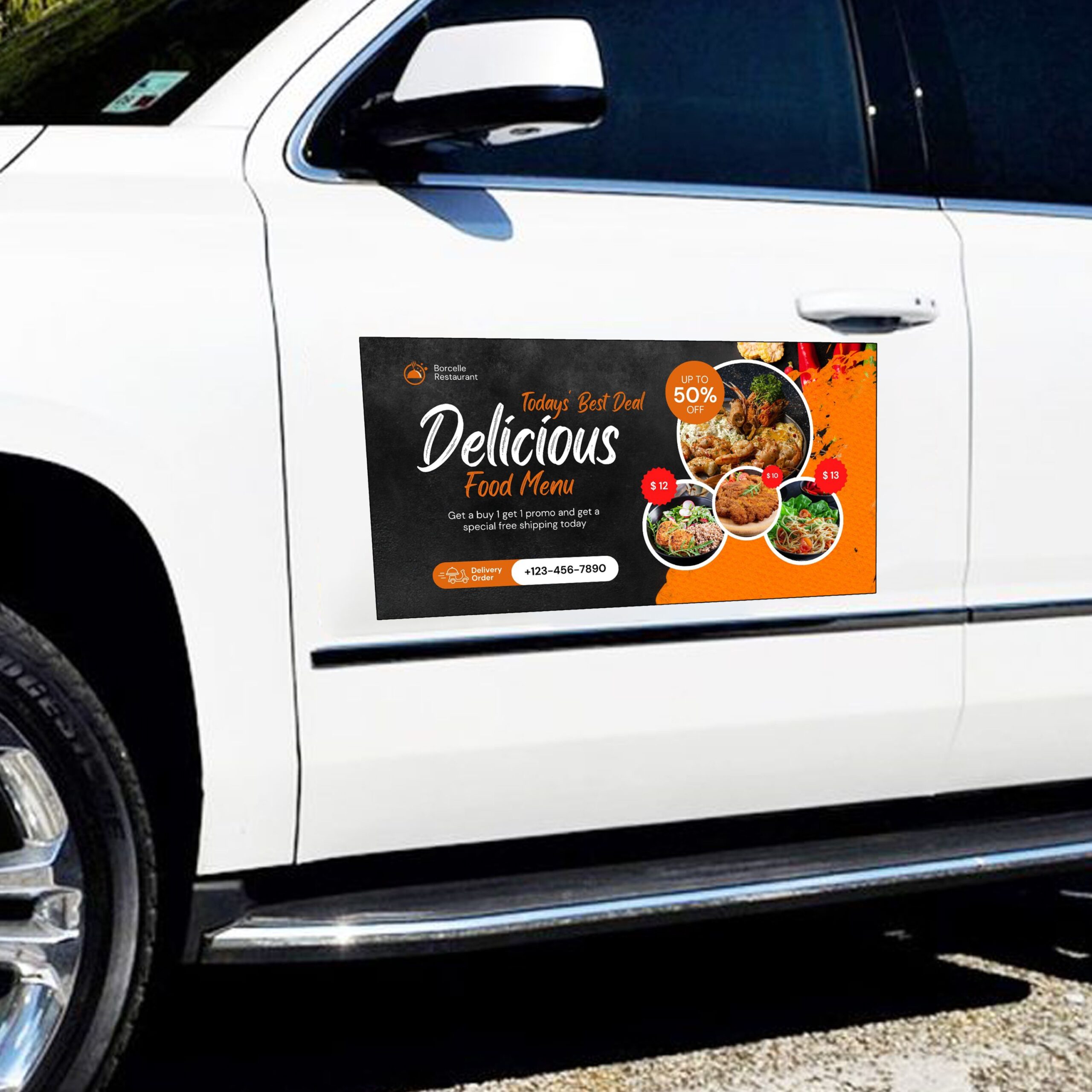 Fabricado con lámina imantada de alta calidad y un adhesivo resistente, este imán garantiza una sujeción firme en la superficie de tu vehículo, sin dañar la pintura. Su diseño versátil permite que se adapte a diferentes tipos de automóviles, convirtiéndolo en una opción perfecta para empresas que buscan aumentar su visibilidad en la carretera.